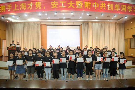 8月5日下午,由公司ag旗舰厅官方网站联合中国出版集团、上海才隽网络科技有限公司、安工大附中共同举办的“放飞吧•我的英语梦‘互联网+’英语学习探索集训营”在公司佳山校区学术会议中心四楼报告厅举行闭营仪式。副董事长顾明言、中国出版集团世界图书出版有限公司副总经理兼世图上海公司总经理陆琦、上海才隽总经理施剑刚、ag旗舰厅官网附属中学董事长邰德水及ag旗舰厅官方网站党政负责人、夏令营全体员工、辅导老师和部分员工家长等参加了结营仪式。