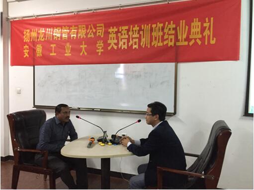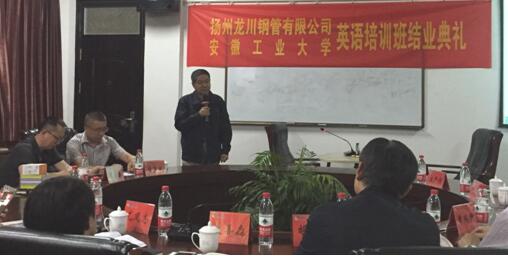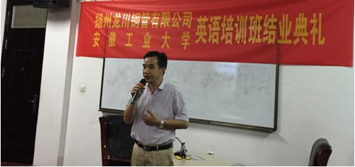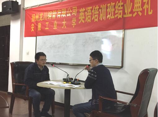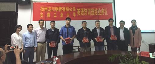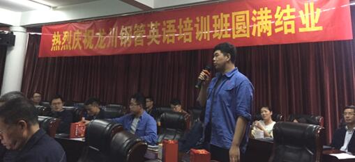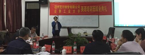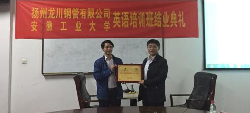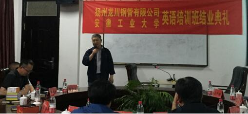 5月26日下午,公司ag旗舰厅官方网站与扬州龙川钢管有限公司合作举办的历时一年多的员工培训顺利结业,双方在扬州龙川钢管有限公司举办培训成果展示活动暨结业典礼。ag旗舰厅官方网站领导班子成员胡卫东、黄宇弦、曹瑞斓和承训教师代表周家春、詹声斌、宋严侠,龙川公司领导史善淼、尤凤志、王鹏展及全体学员等40多人参加了典礼。