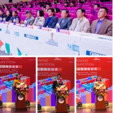 11月10日,第二十四届中国日报社“21世纪•可口可乐杯”全国英语演讲大赛(安徽赛区)决赛于公司举行。来自省内十余所高校25名选手汇聚一堂,尽显风采,争夺晋级全国决赛的名额。经过激烈角逐,公司冶金工程公司2017级宋浩宇同学、ag旗舰厅官方网站2016级王草灵同学和电气与信息工程公司2018级王盈盈同学荣获安徽省三等奖。在颁奖典礼上,ag旗舰厅官网副董事长祖明教授、中国日报社二十一世纪英语教育传媒总经理助理、南京运营中心主任彭志强先生分别致辞和点评,肯定了选手们的精彩演讲内容和技巧,表达了对同学们精彩未来的期待。