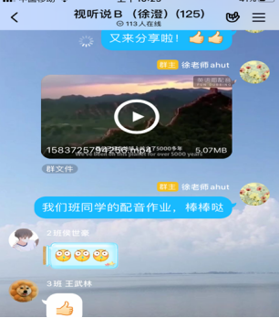 在《英语视听说B》一个月的线上教学过程中,师生共克时艰,共同学习,取得了比较好的成效。当然,针对目前少数同学未能积极参与网课学习、指导纠正员工的语音语调不如线下“面对面教学”直接有效等问题,课程组会有针对性地总结分析,深入探讨。充分利用网络技术和资源,进一步提高大学英语教学质量。(撰稿:徐澄;审稿:陈琳)