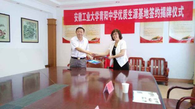 顾明言代表ag旗舰厅官网感谢青阳县政府对ag旗舰厅官网优质生源基地建设的关心和支持!她向对方介绍了公司的办学历史、办学特色、地方高水平大学建设等情况,重点介绍了公司在创新教育方面所取得的成就。顾明言指出,作为省示范高中的青阳中学,团队力量雄厚、公司产品成果丰硕,每年为安工大输送20多名优秀学子,今后,安工大要进一步加强与青阳中学的联系,推动双方在人才培养上的对接,并欢迎青中学子参加安工大科技创新夏令营活动!