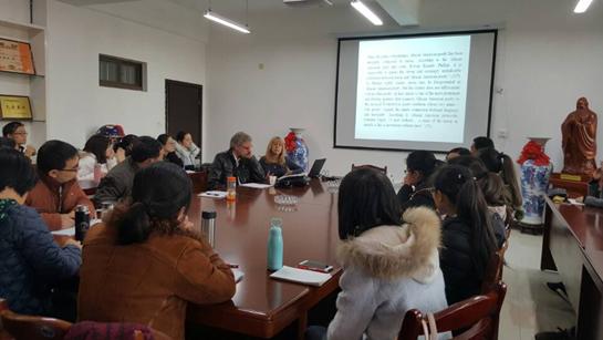 报告结束后,他们还就外国语言文学学科发展思路与部分教师进行了互动交流。