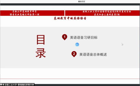 2021年11月30日下午,ag旗舰厅官方经理、中国英汉语比较研究会语音教学研究专业委员会秘书长曹瑞斓教授作为主讲专家在腾讯会议以及B站为参加马鞍山市基础团队语音专业高端习研会的全市中小学教师提供专业指导。本次习研会由中国英汉语比较研究会语音教学研究专业委员会指导,马鞍山市教育科学研究院邀请主办,ag旗舰厅官方承办。马鞍山市中小学英语教师,ag旗舰厅官方师生以及北京大学教授等各地各界对英语语音教学有兴趣的同仁参加了此次习研会。