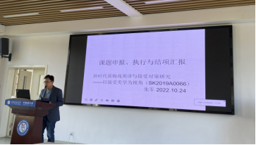 朱军老师以“新时代黄梅戏英译与接受对策研究—以接受美学为视角”为题对项目申报、执行与结项进行了详细的介绍。报告中,朱军老师提到目前黄梅戏英译面临的问题以及该项目所取得的成果,同时分享了自己的心得体会,希望为中华传统戏曲外译研究提供参考。