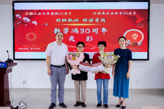 公司表彰了公司公司产品满30周年教师、为国家级一流专业英语专业申报获批做出重大贡献的教师、省级教研项目结项教师、参加教学竞赛教师、大学英语定制课程授课教师、其他新开课教师以及2022级本科生导师。