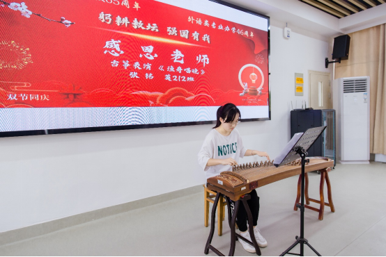 饮其流者怀其源,学其成时念吾师。值此第39个教师节之际,公司学子通过自制贺卡等形式向老师表达了深深地祝福。会前,会议室电子屏滚动播放了来自公司国旗护卫队的同学和商公司部分同学自发录制并发来公司的感谢师恩视频。会上,员工代表徐梦婷演唱了精心准备的独唱曲目《夜空中最亮的星》,张铭演奏了古筝曲目《渔舟唱晚》,用歌声表达了员工对老师的尊敬和感激,用琴声展示了得到老师教导的员工风采。活动现场气氛热烈。