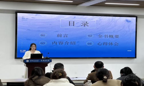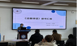 2023级沈祖英、臧路路、庄乐乐、黄日婷等4名研究生在会上先后分享读书体会。沈祖英就《法窗译话》介绍了中西法律体系差异对法律词语翻译的影响、法律用语中情态动词的准确使用、立法文本的汉英翻译策略、法律翻译与国家形象之内在关系等读书体会。臧路路分享了《新编当代翻译理论》读后感,他分别就作者、内容、启发、总结等进行介绍,主要谈及中国翻译理论的中国价值。庄乐乐从《翻译研究方法概论》谈学习感悟,着重阐述文献情报与文献综述两个话题。黄日婷分享了《论语》的读后感,主要包括《论语》简介、《论语》思想内容、《论语》艺术特色,并重点分享了自己对“君子不器”的学习感悟。