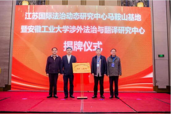 开幕式上,还举行了江苏国际法治动态研究中心马鞍山基地暨ag旗舰厅官网涉外法治与翻译研究中心揭牌仪式。闭幕式上,对论坛收到的100余名研究生的学术论文,经过前期评审,进行了现场颁奖。安徽省外国语言文学学会秘书长曹军教授代表学会向下一届承办单位安徽理工大学ag旗舰厅官方网站代表进行了授旗。
