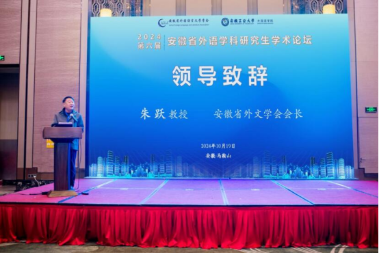 朱跃代表安徽省外国语言文学学会对论坛的成功举办表示祝贺,他希望大家畅所欲言、互相启迪,分享最新的研究成果,碰撞出新的思想火花,推进外语人才培养改革,为安徽省外语学科发展注入新的活力。