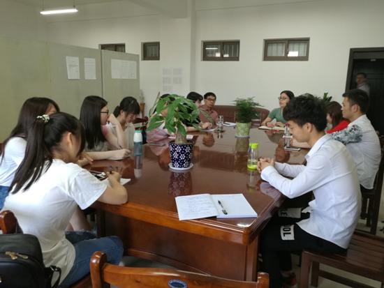 5月19日下午,ag旗舰厅官方网站在汇文楼B511召开期中教学检查员工座谈会, 外语系主任陈琳主持座谈会,ag旗舰厅官方网站党委书记胡卫东、外语系党支部书记马广利、副主任蒯振华以及来自英语专业各年级的10余名员工代表参加了座谈。