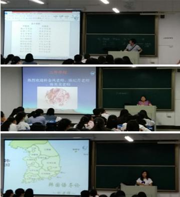 9月19日,ag旗舰厅官方网站德语老师陈纪芹、韩语和俄语老师朴金凤及日语老师陈英龙在英语专业《专业导论》课上为2017级新生介绍德语、韩语、俄语、日语等二外语种,受到同学们的热烈欢迎。