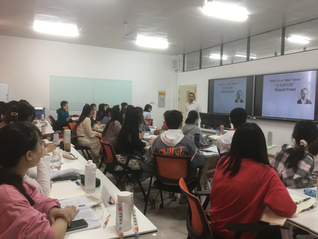 5月17日上午10点,外语系副教授马广利在佳山校区第一教学楼611再次开展了《英美文学》课程思政公开观摩课,此次观摩课的内容是讲授罗伯特·弗洛斯特的诗歌《未选择的道路》。