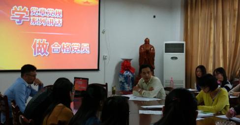 本次党课围绕“学党规党章系列讲话,做合格党员”展开。黄宇弦首先以辅导考研员工学习政治为例,告诫党员同志对于党章学习切勿死记硬背,一定要多读多理解,从对党的发展历史的认识出发,循序渐进,深入领悟党章要领和精神,唯有此才能将党章内容和精髓渗入自身意识和认知,转化为自己的知识。黄宇弦继而详细地从党的发展历程、性质、宗旨、党在不同阶段的重大思想成果等方面向同学们讲述了中国共产党在各个阶段的发展历史,强调了认识党的发展历史及学习党章的重要性。黄宇弦强调从毛泽东思想、邓小平理论到今天的“中国梦”,中国共产党始终秉承着全心全意为人民服务的宗旨,不断紧随时代发展的脚步与时俱进,创新理论成果。讲到社会主义核心价值观,黄宇弦从个人、社会、国家三个层面讲解,告诫员工党员们不仅仅是学习这些理论知识,更要身体力行,脚踏实地的提高自己的道德素养与思想觉悟,把“两学一做”落到实处。
