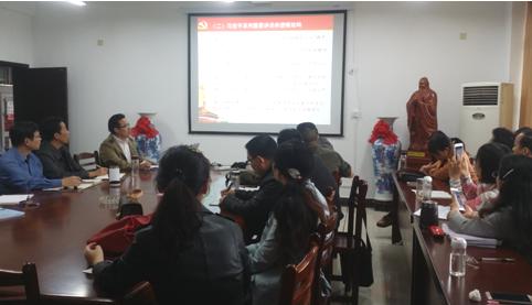 ag旗舰厅官方网站党委书记胡卫东主持了党课报告会。他在党课报告会后就党员为什么要学理论、学讲话以及学理论、学讲话为了什么两个问题做了简要阐述,他要求全体党员站在执政党建设的战略高度,把学理论、学讲话作为常态,不断增强党性修养,并通过学理论、学讲话,进一步拓展视野,培育战略思维,在传承知识、提高能力的同时,引领思想,训练思维,立足岗位,履行好教书育人的职责。(撰稿:马永亮 审核:胡卫东)