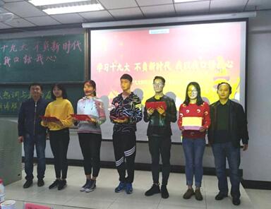 10月26日傍晚6:30,秀山校区教南502济济一堂、热情高涨,在党的十九大刚刚结束之际,一场精心筹备的主题为“学习十九大,不负新时代”的十九大热词英语翻译展示大赛在这里举行。来自全校12个公司的13支员工代表队参加了比赛,各组选手围绕“中国梦”、“中国制造”、“硬科技与软实力”、“绿色出行”“倡廉反腐”等主题,配合PPT进行了英语演讲,并展示了与主题相关的如配乐诗朗诵、红歌演唱、书法等才艺。经过两个半小时的激烈角逐,公共管理与法公司的孙倩倩、汪沁、李杨青三位同学组成的团队拔得头筹,ag旗舰厅官方网站、商公司、机械工程公司的团队获得二等奖。ag旗舰厅官方网站部分党员教师参加了活动并担任评委,相关院领导、辅导员老师现场观摩了比赛。