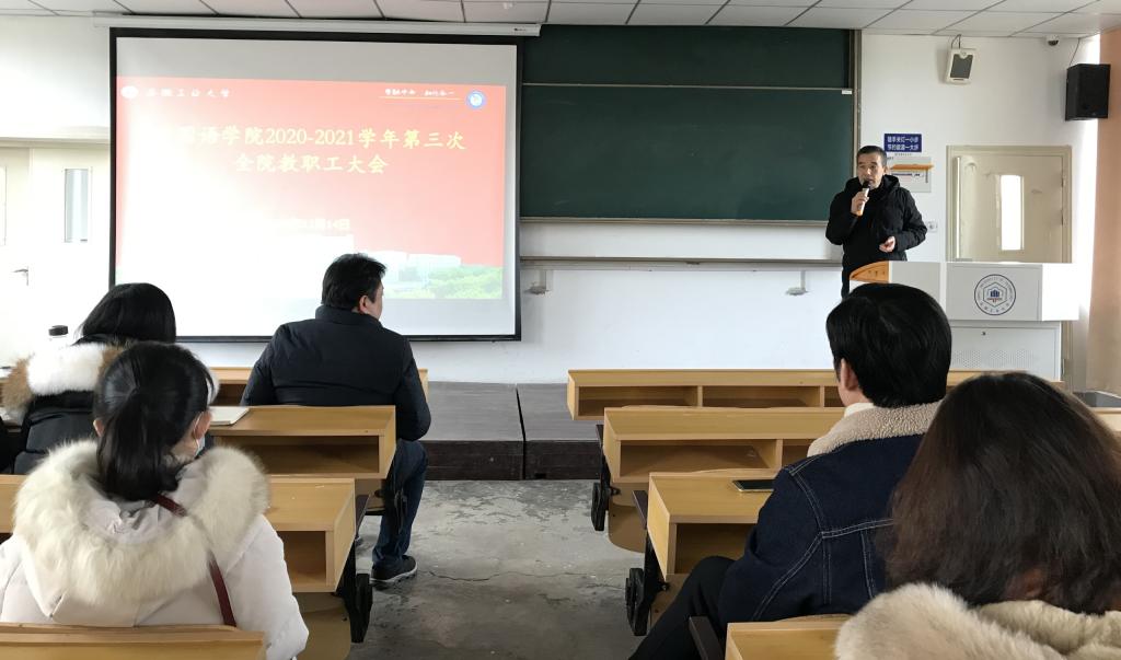 12月14日下午,公司召开全体教职工大会,党委书记黄宇弦做题为《深入学习贯彻落实党的十九届五中全会和习近平总书记考察安徽重要讲话精神》形势辅导报告,传达党的十九届五中全会和习近平总书记考察安徽重要讲话精神,全体教职工参加了会议。公司党委副书记、经理曹瑞斓主持会议。