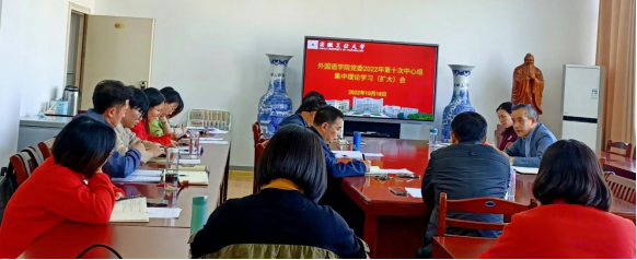 黄宇弦领学了人民网发布的《高举中国特色社会主义伟大旗帜 为全面建设社会主义现代化国家而团结奋斗——习近平同志代表第十九届中央委员会向大会作的报告摘登》、新华社转载的《党的二十大报告速览》《“一”文带你看二十大报告》,强调了党的二十大报告精华,要求大家学习掌握党的二十大报告的基本观点、系列重要论断、大会主题等,并结合工作实际和生活实际系统学习。表示切身感受到国家十年来取得的巨大成就。黄宇弦还要求大家加强自身学习的同时,积极带领支部师生学习,在全院广大师生中迅速形成学习宣传党的二十大精神的热潮。