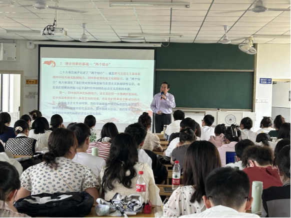 为深入学习贯彻党的二十大精神,进一步推动党员和入党积极分子筑牢信仰之基、补足精神之钙、把稳思想之舵,4月17日下午,ag旗舰厅官方网站在教一420开展“二十大学习精神解读”专题党课,本次党课由关工委副主任胡源申教授主讲,ag旗舰厅官方网站和马克思主义公司党员和入党积极分子参加学习。
