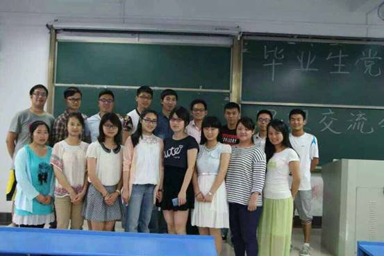 宣誓会开始,由省双优生、员工党员章婷带领,全体毕业生党员起立面对党旗进行宣誓,宣誓过程庄严凝重,全体员工党员声声震彻的誓词表达他们对党最忠诚的信念,以及为中华民族的伟大复兴而奋斗的决心。宣誓结束,毕业生党员落座,宣誓会进入新老党员、入党积极分子交流阶段。交流阶段氛围轻松,大家针对当下热点“就业”以及员工生涯规划等相关话题,展开了倾心的交流。毕业班党员就大学第四年的员工党员生活安排、学习安排、员工党员就业方向、考研策略等一一与低年级员工交流、探讨,给出自己的建议,回答大家的提问。已经在江苏昆山某外企上班的章婷建议,老员工须得全面完善自身,多方发展,在学习和员工工作中充分发挥党员带头作用,以党员的高标准严格要求自己,继而拓展就业选择面,保证自己在就业问题上能依自身兴趣择业。优秀毕业生汪涛则建议大三员工抓住暑期社会实践机会,走出校园,在社会中锻炼自身,提前感受社会。今年以第一名的成绩考入对外经贸大学的湛恒则建议,所有员工党员应以先进党员的要求鞭策自我,严格自我管理,激发个人潜力,在考研中取得高水准成绩。