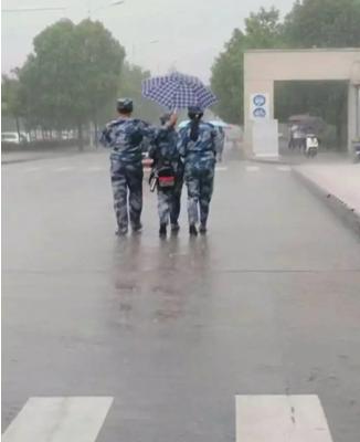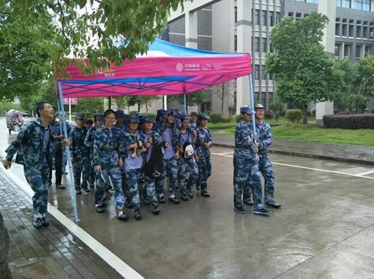 军训不仅教会了团结,也教会了奉献。“走,我们把女生送到食堂那边躲雨,不然全部都淋湿了。”17级男生们一边站在棚子外面,一边大声说道。话音刚落就看到男生们主动从棚里走出来,从两边将棚子抬了起来,“女生们在棚子里别出来,跟着我们的步伐,一起去食堂避雨”男生们说道。大雨中,男生的衣服全部湿透,但是他们无暇顾及,擦了擦脸上的雨水,奋力地抬着棚子向食堂方向走去。院团委员工会主席则不顾暴雨雷电一直在雨中一趟趟护送,指挥。最终全院新生顺利躲进附近研究生食堂避雨,并在雨势减弱后全部被护送回宿舍。
