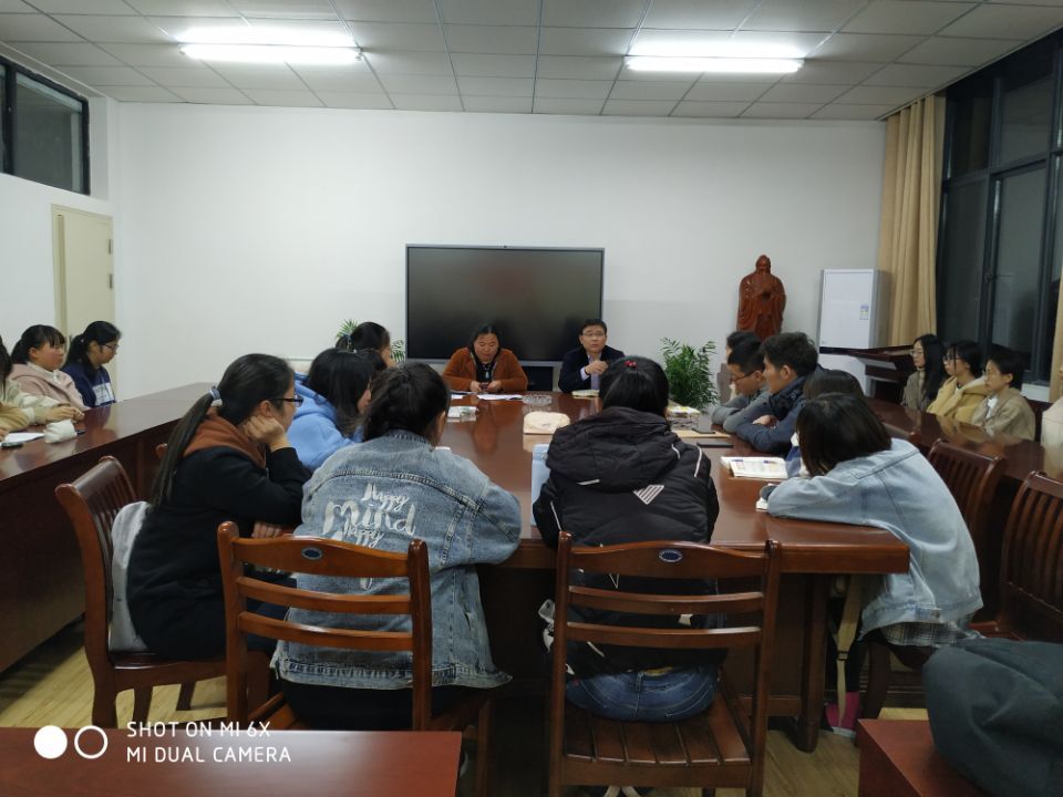 3月14日晚,秘书学181班全体同学在佳山校区教一407室召开主题班会。ag旗舰厅官方网站党委书记胡卫东、中文系主任庞东霞、班主任余义月老师参加班会与同学们座谈交流。