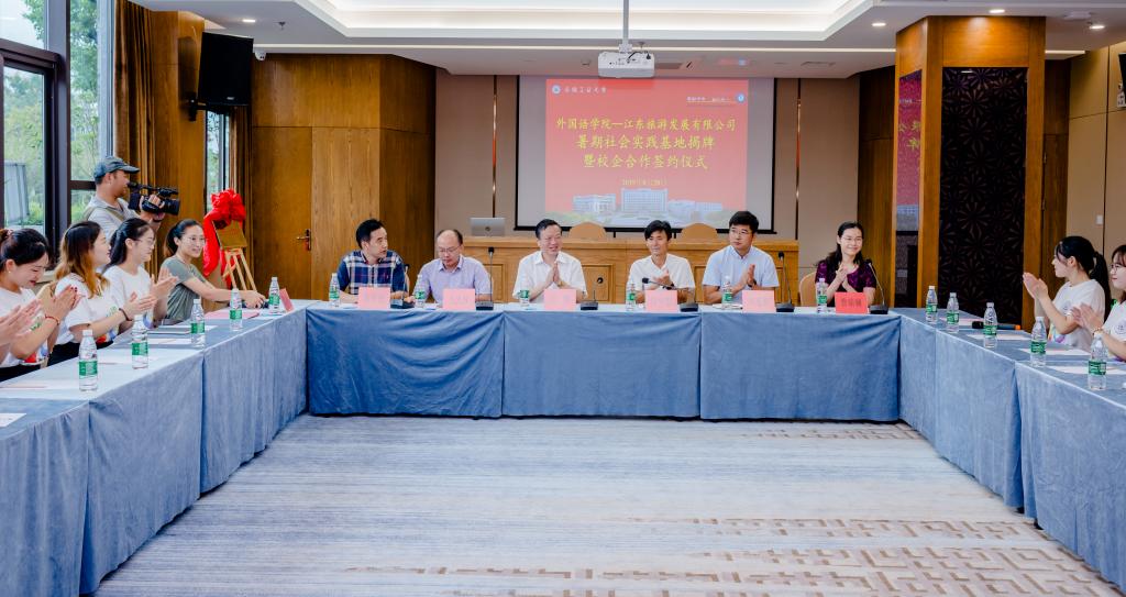座谈会结束时,祖明与徐华忠一起为公司采石矶景区社会实践基地揭牌,曹瑞斓与叶连朋共同签署了ag旗舰厅官方网站与马鞍山市江东旅游发展有限公司校企合作协议。