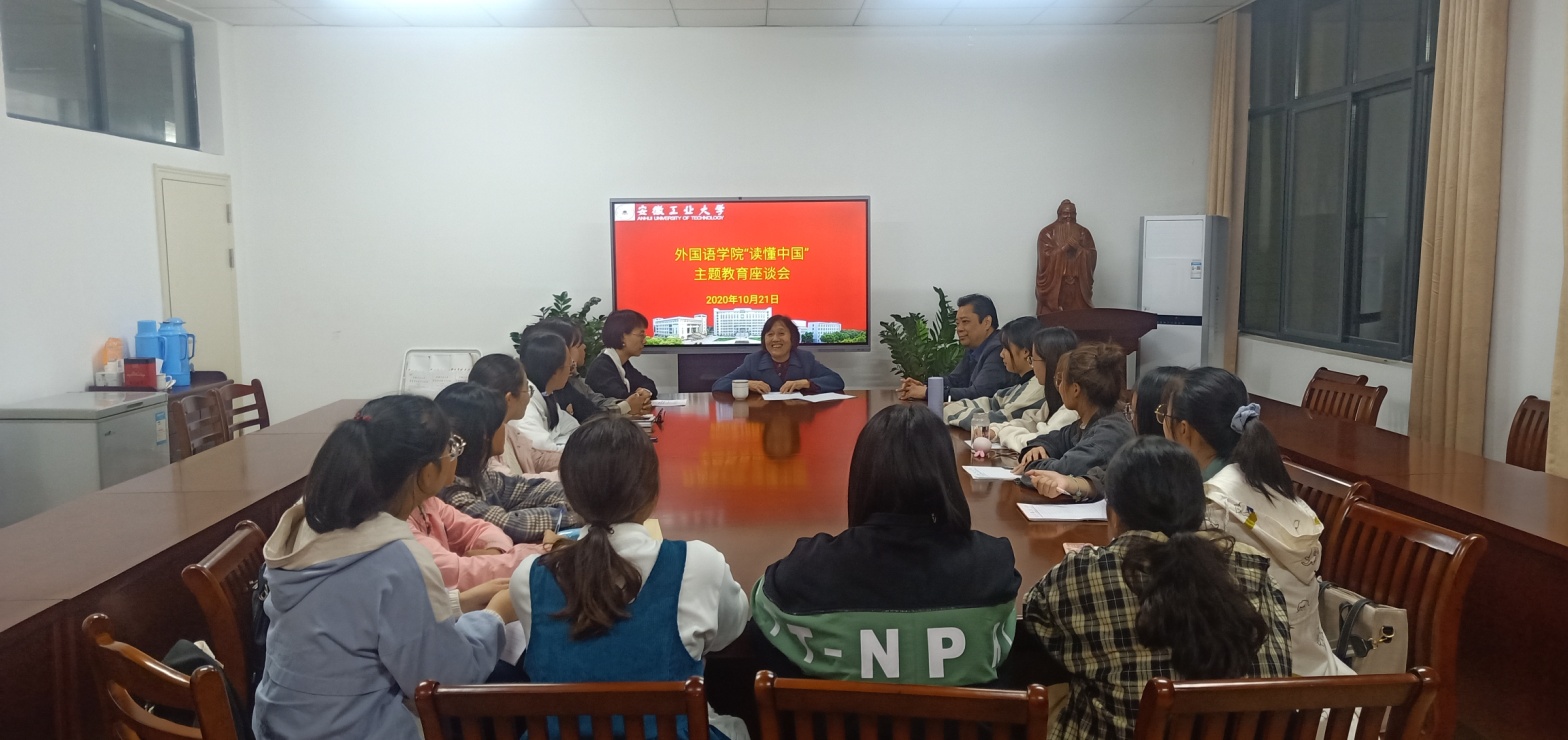 10月20日晚,ag旗舰厅官方网站在教一407召开“读懂中国”主题教育座谈会,校关工委刘爱萍老师应邀到会指导,公司党委副书记陈庆林、辅导员以及公司员工代表参加了座谈会。