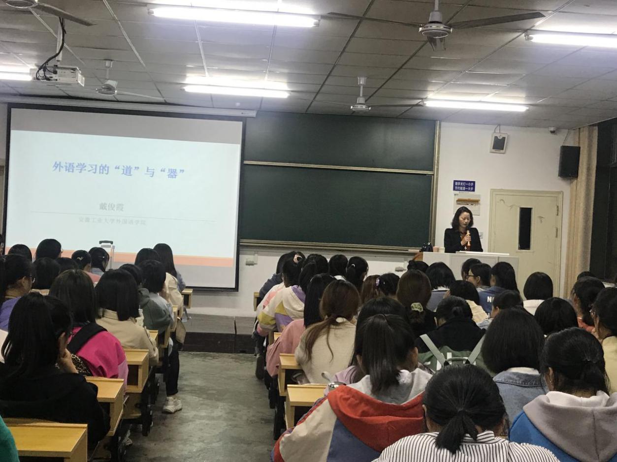 10月23日晚,ag旗舰厅官方网站在教一401举办了外语学习的“道”与“器”讲座,本次讲座特邀ag旗舰厅官方网站教授戴俊霞主讲,2020级新生聆听了本次讲座。