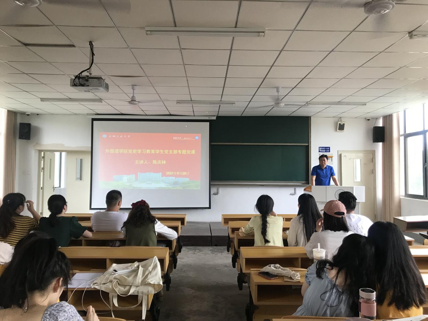 陈庆林结合党史上的重要人物和重大事件向同学们讲述了党的百年发展史就是一部为中华民族独立、解放、富强,为中国人民自由、民主、幸福不懈奋斗的历史。党的一百年,是矢志践行初心使命的一百年,是筚路蓝缕奠基立业的一百年,是创造辉煌开辟未来的一百年。在百年接续奋斗中,党团结带领人民开辟了伟大道路,建立了伟大功业,铸就了伟大精神,积累了宝贵经验,创造了中华民族发展史、人类社会进步史上令人刮目相看的奇迹。强调开展党史学习教育是共产党人牢记初心使命、推进中华民族伟大复兴历史伟业的必然要求,是坚定信仰信念、在新时代坚持和发展中国特色社会主义的必然要求,是推进党的自我革命、永葆党的生机活力的必然要求。同学们要通过党史学习教育,进一步感悟党的思想伟力,把握历史发展规律趋势。
