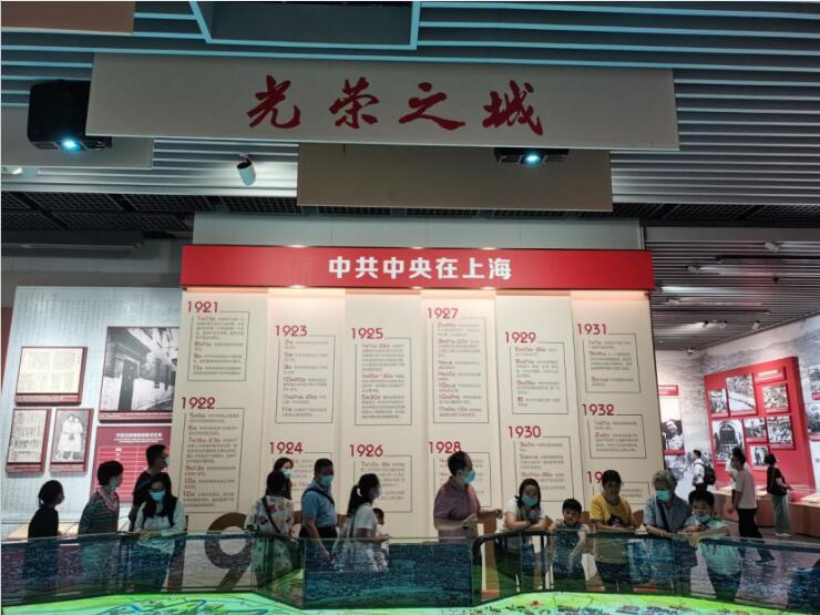 七月的上海高温难耐,但是来一大纪念馆的参观者们热情依旧不减。整个展馆分为五个部分,以红色为主基调,展厅内可谓“步步有景,步步有故事”。前厅正中央”的历史组画,记录了从上海、南湖、瑞金……到北京一个个光辉的红色地标,再现了中国共产党苦难辉煌的历史征程。 面积超过3000平方米的历史陈列展厅,共有612件文物展品。每一件文物尘封一段历史,每一段历史都值得后人铭记于心。