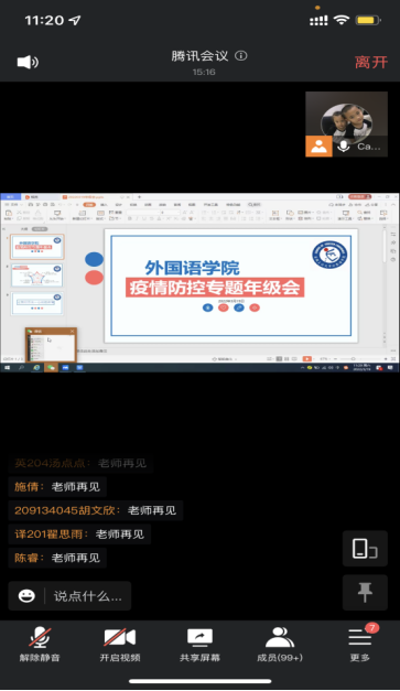 此次疫情防控暨安全教育主题线上年级会的召开,增强了同学们的安全意识和责任意识,同时督促同学们严格自律,以饱满的精神状态投入到学习中。(撰稿:张美玲 章梦璐 审稿:陈庆林)