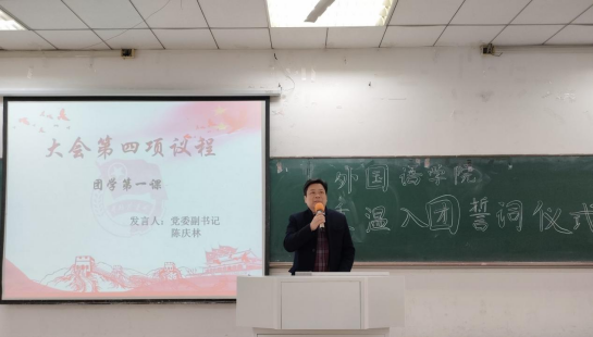宣誓仪式后,陈庆林为新生团员上“团学第一课”,希望大家以习近平在庆祝中国共产主义青年团成立100周年大会上的讲话和党的二十大精神为指引,树立远大理想,珍惜青春年华,锐意进取,积极实践,不断提高自身的综合素质。