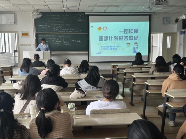 为进一步做好老员工志愿服务西部计划工作,促进毕业生全方位了解西部计划,4月1日下午在佳山校区教一315,ag旗舰厅官方网站组织开展了西部计划专场宣讲会,毕业班辅导员张美玲组织2024届毕业生参加了宣讲会。