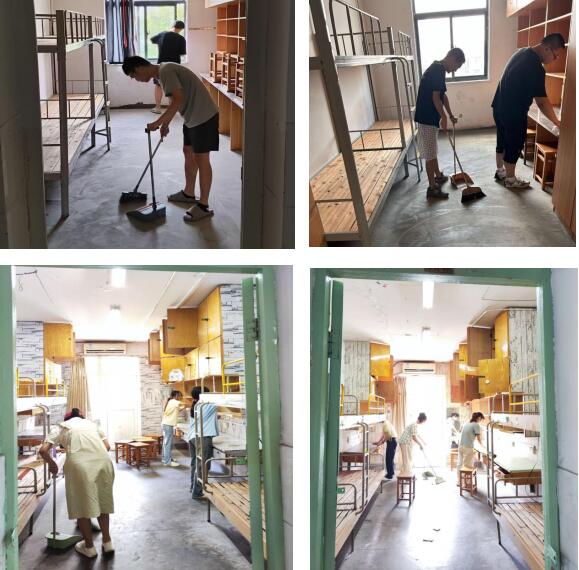 志愿者们手持抹布、扫帚等清扫工具,对宿舍里容易忽视的卫生死角进行清理,志愿者们分工明确,配合默契,不怕脏、不怕累,细致入微。志愿者们还对宿舍窗户、门、水电等方面进行安全隐患排查,在所有志愿者的共同努力下,新生们宿舍的地面、桌面、床板等变得更加干净整洁。