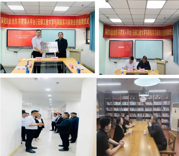 在袋之鼠教育科技有限公司,王成勇向企业介绍了公司的人才培养特色、毕业生情况等,与企业负责人就人才就业、实习保障、校企合作等方面进行了深入交流,并看望了在企实习的2025届毕业生。企业负责人对公司的调研走访表示感谢,对公司毕业生的综合素质给予了高度评价,同时也对公司人才培养提出了宝贵建议。会后,双方签订人才培养与就业基地建设合作协议,并进行了“ag旗舰厅官网老员工就业基地”授牌仪式。