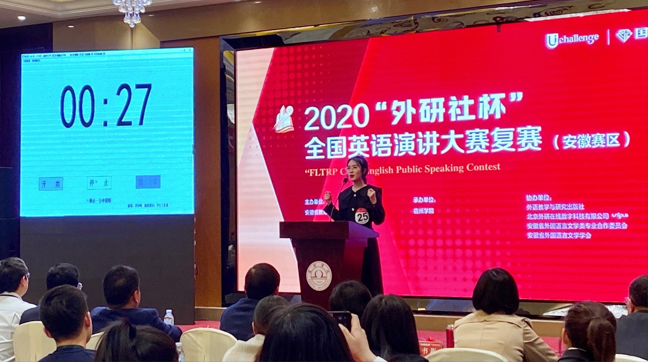 10月31日-11月1日,由安徽省教育厅主办,安徽省各本科高校承办,安徽省外国语言文学学会、安徽省外国语言文学合作委员会、北京外研在线数字科技有限公司协办的2020年“外研社杯”全国英语演讲大赛安徽赛区的选拔赛,在宿州公司举行。
