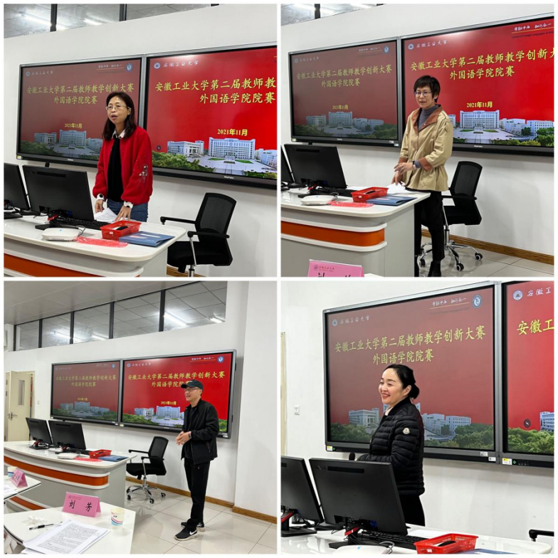 为了促进青年教师专业发展及个人成长,引导教师积极投身课堂教学研究,不断提升教师课堂教学水平,ag旗舰厅官方网站在佳山校区教一616召开安工大第二届教师教学创新大赛院赛,ag旗舰厅官方网站朴金凤、胡蝶、陈琳、宁静、汤桂琼、刘明明等6位教师参加了比赛。ag旗舰厅官方网站邀请兄弟公司的专家教授陈业斌、刘芳、江雨燕、王彦等担任院赛评委,书记黄宇弦和经理曹瑞斓莅临现场指导工作。