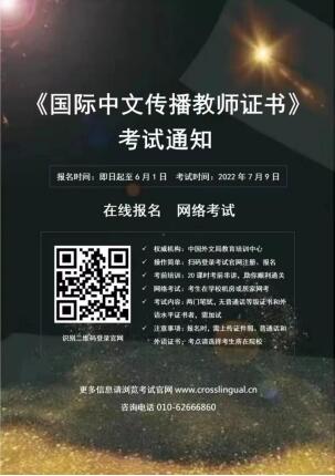 1、线上报名:国际中文传播教师考试官网报名,http://www.crosslingual.cn/”。